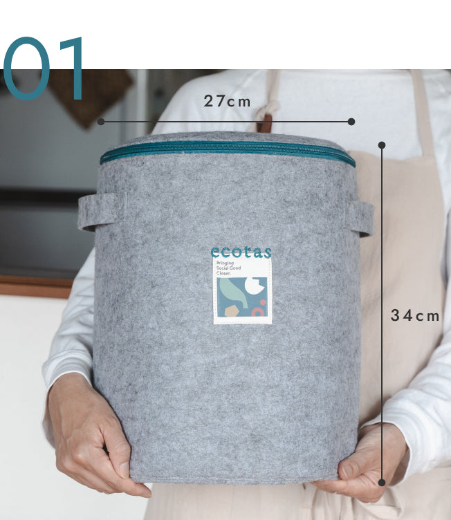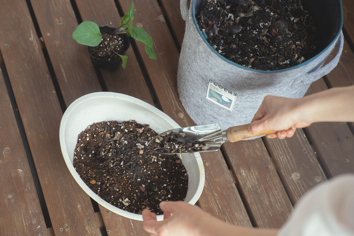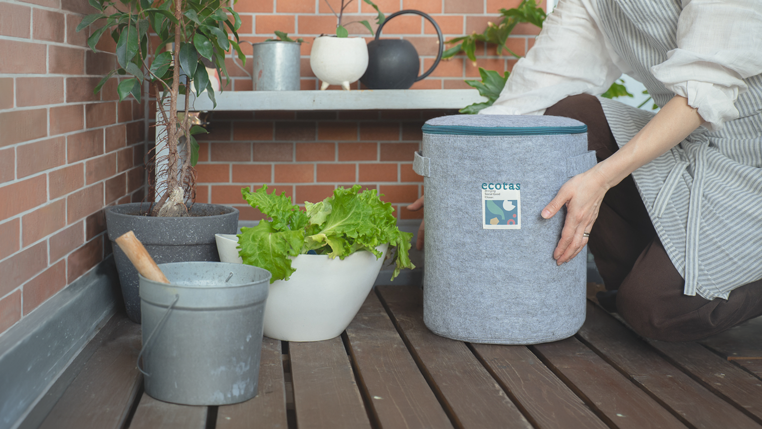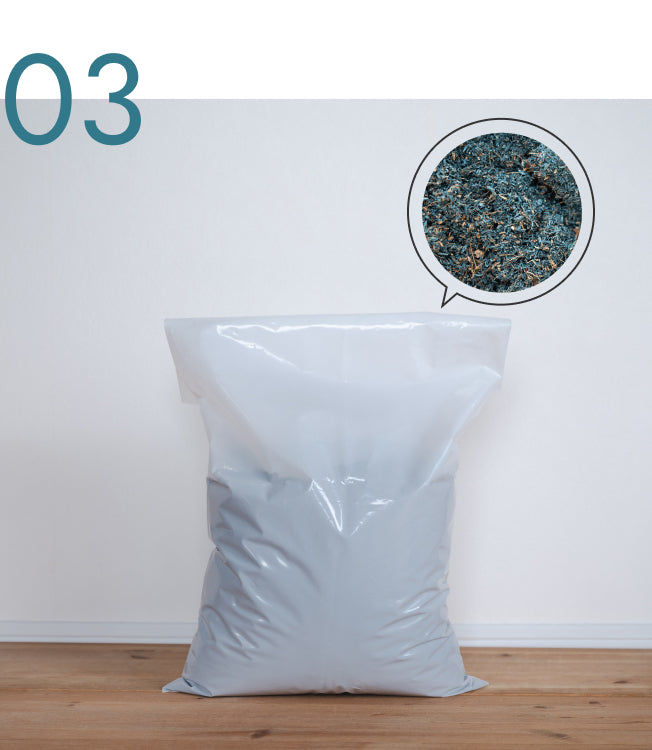 バッグの中にコンポスト基材を入れ、風通しの良い場所に設置