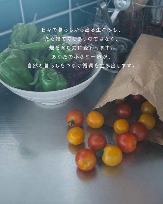 日々の暮らしから出る生ごみも、ただ捨ててしまうのではなく、畑を育む力に変わります。